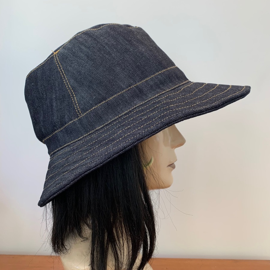 Unisex Foldable Trilby/Fedora - Roll it up and put it in your bag. Mould it to the style you want up at the back/front/sides. Made with Cotton denim with contrast stitching Size X-Large 60-61cm. Email me if you want another size.