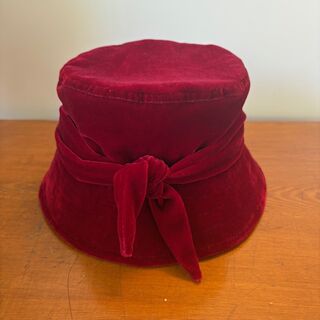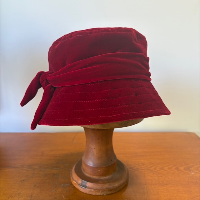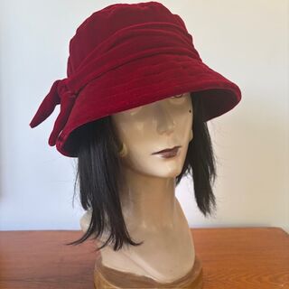 Cloche Style Silk Velvet tie trim in Red. The brim may be worn up, down or a combination of both. Great for everyday or special occasion. Size Small